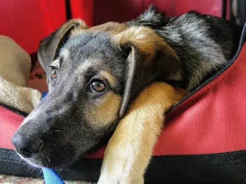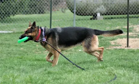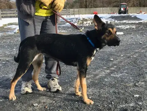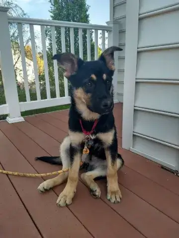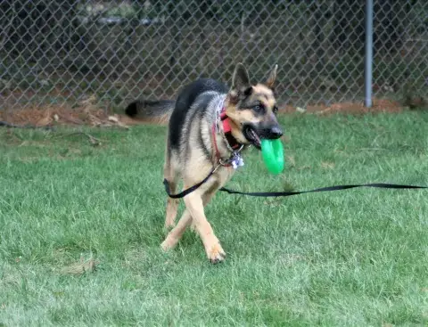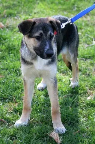 Boyka was surrendered to us as his former person was very busy with his graduate studies. He knew that Boyka needed more time and attention then he could give him. Boyka is very well behaved for a 7 month old puppy, he is housebroken and crate trained. He will whine and bark when first going into his crate but will settle. He absolutely loves the company of other dogs, both males and females, he wants to be near them all of the time. He is currently in a foster home with another GSD and Boxer, both are seniors and he does so well with them. He does have a lot of puppy energy, he enjoys going for walks, playing and running in the yard and a good game of keep away is a lot of fun. He does not have perfect leash manners, but they aren't bad for a dog of his age. He is a sponge and soaking up everything his foster mom is teaching him. He has met children of varying ages and did well, but he does not take treats gently and his energy level may be too much for little ones. Boyka is very ready for a good training program and a new forever family.
