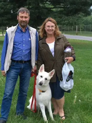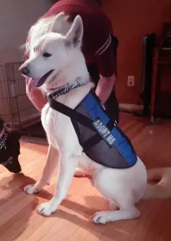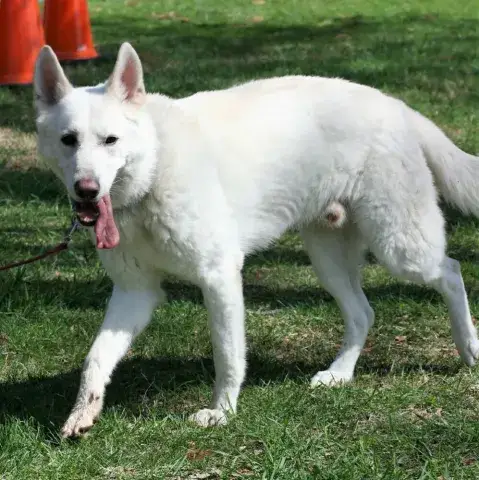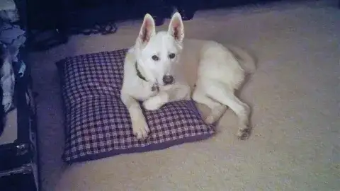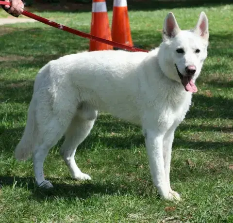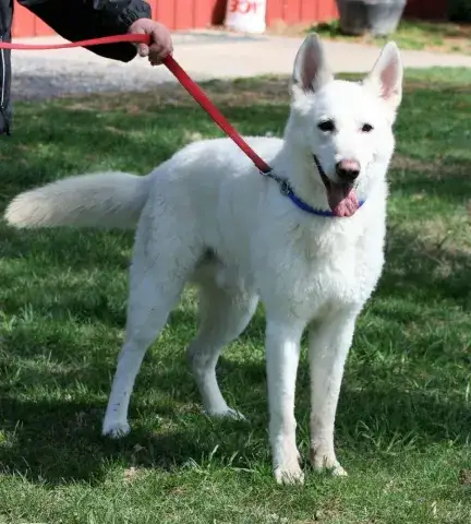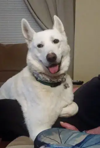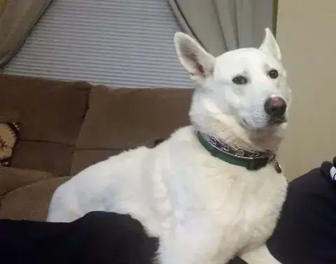 Samson came to us as an owner surrender. Unfortunately his former family have their hands very full with medical needs, this left Samson home alone for too long. He was very much loved and well cared for. He is now looking for a new family, one that will love and care for him as much as his last family has. Samson is a stunning, all white male GSD. In his previous home he lived with young children and another male GSD. Samson is a very smart boy, he can open doors using his mouth to turn the knobs, he can open a gate latch and knows how to get out of a wire crate. He does need some basic obedience training, not only will this help him learn good manners, but it will also help to create a bond with his new family. He enjoys spending as much as time as possible with his family.