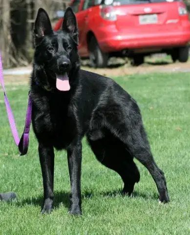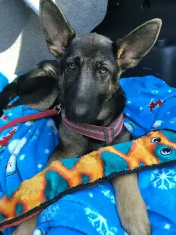 Solomon came to us as an owner surrender. Unfortunately his former family have their hands very full with medical needs, this left Solomon home alone for too long. He was very much loved and well cared for. He is now looking for a new family, one that will love and care for him as much as his last family has. Solomon is a stunning, large, all black male with the shiniest coat. In his previous home he lived with young children and another male GSD. He does need some basic obedience training, not only will this help him learn good manners, but it will also help to create a bond with his new family.