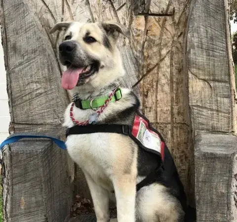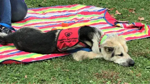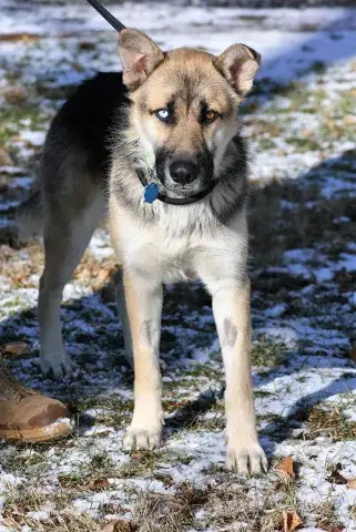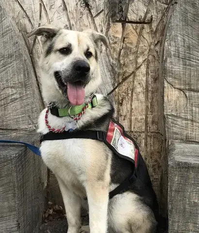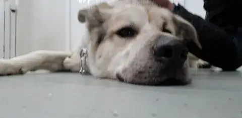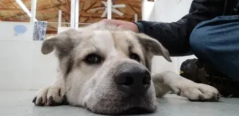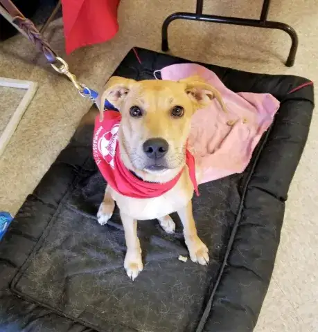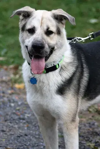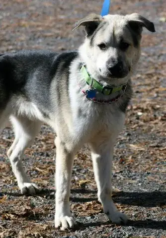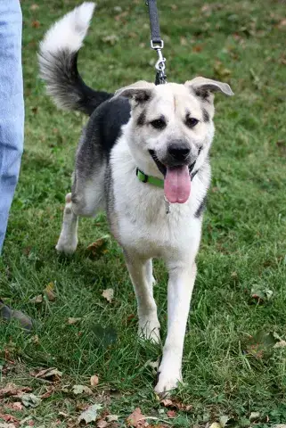 Camber was picked up by animal control running at large with Lotus, their family came for them so we have no history on him. He is a large boy at 88 lbs. He has been friendly with those he has met. He does require training as do all dogs, training helps teach what is expected of them, along with good canine manners. With a dog this large you will want him to have good leash manners also.