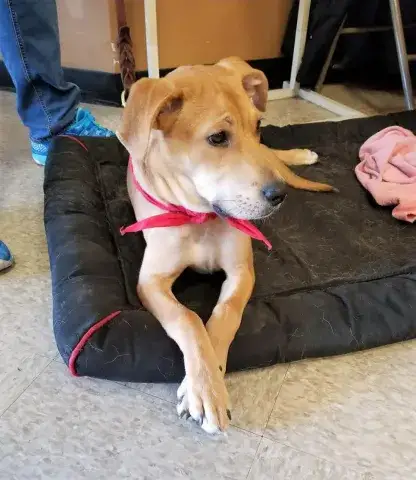 Adorable Corina found herself at a shelter as a stray and her time was up. She was just too loving to leave behind to face being put to sleep. She is all puppy, she may be younger than 8 months. She is full of tail wags and puppy kisses with everyone she meets. She of course will need training and a family that has the time to deal with puppy antics. Yes, she will have potty accidents in the house and may even chew on things she shouldn't but that's what puppies do. It is up to her family to provide guidance and teach her good manners. Ask to meet our sweet Corina