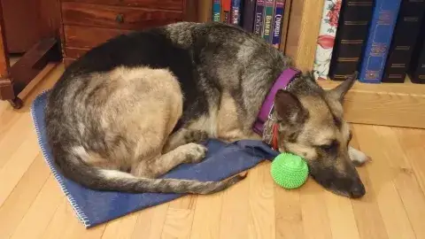 Briggs was surrendered to a shelter by his former family as he may have EPI, which is easily treatable. They had planned on breeding him with their female Shepherds, thankfully that will not happen now. With so many unwanted dogs in shelters we did not need more to add to those that die everyday. We will be having Briggs tested for EPI and should he have it he will be started on enzymes, it's that simple. He is such a friendly boy who thinks he is a lap dog. He is good with other dogs. Watch for updates.