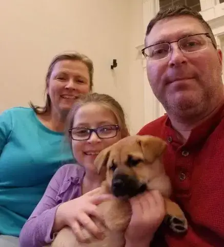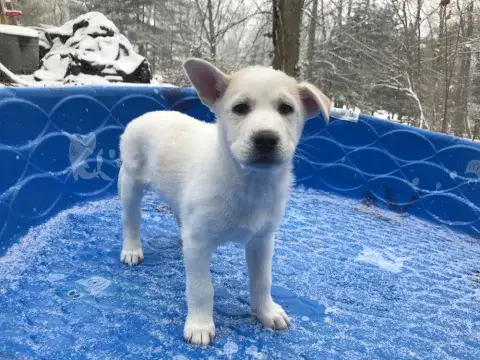 Laynette is one of Guinevere’s “Knights of the Round Table” puppies, who was found in a field very pregnant and gave birth to 7 puppies in a shelter. Laynette cannot be any cuter and is absolutely a great little girl, happy go lucky and loves to give puppy kisses. Laynette has a lot to learn about being a good canine citizen and will require training. Please remember that puppies are a lot of work and require a lot of attention from their family - puppies are a 10-12 year commitment. Puppies are full of energy and can be mischievous – they will whine, have accidents, get into things, and chew on inappropriate things. With time, patience, guidance and training, Laynette will become even more of an amazing girl than she already is. If interested and she sounds like a good match for your family, please submit an adoption application for Laynette! Laynette will be available for adoption on December 10th at 8 weeks old!