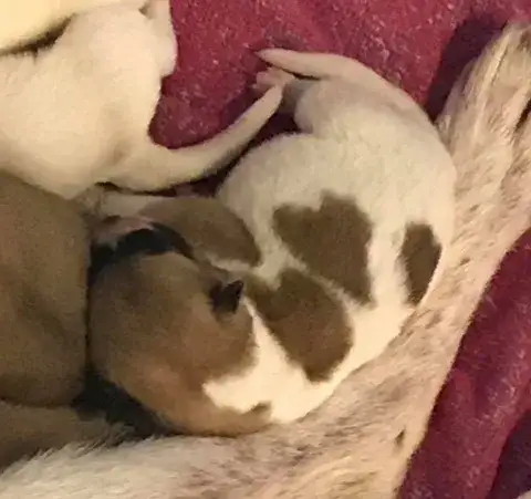 Guinevere was found in a field and very pregnant. She was taken to a shelter where she went into labor and delivered 7 adorable German Shepherd mix puppies. We have no idea who daddy was. Guinevere and her puppies are being well cared for by a loving foster family. Guinevere is a fabulous mom, she takes such good care of her babies. She is so sweet and gentle and loves getting attention and help from her foster family. Guinevere is not in the greatest of condition, she is underweight and has a case of mange which causes her to be very itchy. This does not stop her from being an amazing mom. Guinevere is receiving the medical care she needs, high quality nutrition and exceptional care. The puppies will be available for adoption Dec. 10, 2017, so if you are interested put in your application now. Once Guinevere is done with motherhood she will be available for adoption. Keep an eye out for pictures and updates of the puppies and this adorable family.