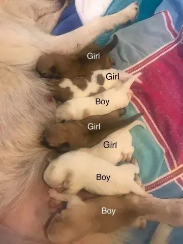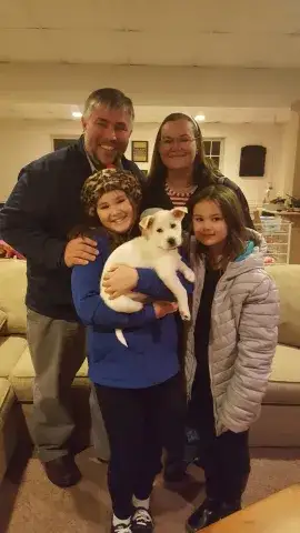 Elaine is one of Guinevere's “Knights of the Round Table” puppies, who was found in a field very pregnant and gave birth to 7 puppies in a shelter. Elaine cannot be any cuter and is absolutely a great little girl, happy go lucky and loves to give puppy kisses. Elaine has a lot to learn about being a good canine citizen and will require training. Please remember that puppies are a lot of work and require a lot of attention from their family - puppies are a 10-12 year commitment. Puppies are full of energy and can be mischievous – they will whine, have accidents, get into things, and chew on inappropriate things. With time, patience, guidance and training, Elaine will become even more of an amazing girl than she already is. If interested and she sounds like a good match for your family, please submit an adoption application for Elaine! Elaine will be available for adoption on December 10th at 8 weeks old!