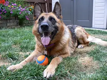 It takes a special family to adopt a senior dog; it's uncertain how much time you'll have together and how much of that time will be pain-free. But the love you receive from a senior dog can be some of the most rewarding you will experience. Cheri is a senior who has had a difficult life, and is seeking a loving family to be her forever home. Cheri was picked up as a 9 year old stray and placed in a local shelter, which contacted MAGSR to help find her a home. The veterinarian found that she was likely used as a breeding dog, and potentially dumped when she could no longer have litters of puppies. They also found that she had cancerous mammary tumors and a bad skin infection. With the help of our vet, we were able to remove the tumors, heal her infection, and she is now living in a foster home. Since her recovery and adjustment to foster life, her personality has shown through. She loves to go for car rides and walks, finding giant sticks to carry along the way, and she absolutely loves to play ball. She can be standoffish with other dogs, especially if she doesn't know them, and thinks some cats look like tasty treats. And while she hasn't had any specific problems with children, we think she may be too protective and shepherding for a family that would often have children running about. But most of all, Cheri just wants to be near her family and have a soft place to snuggle into. If you would like to meet Cheri, please contact our Adoptions Coordinator for more information.