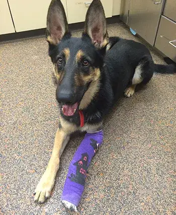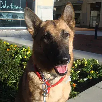 Hemlock was very much loved by his family but his owner was deployed and his family looked to MAGSR to find Hemlock a loving and caring home. He is a beautiful boy who is very friendly with everyone he meets. He loves to play fetch, Frisbee and loves to cuddle. He has carpus valgus in his left front joint. It has been established that this condition most commonly occurs in rapidly growing medium to large breed dogs. Some evidence suggests male puppies are more likely to be affected by this condition. This condition does not stop Hemlock from running and playing and having fun. If you can provide this handsome boy a loving home please ask to meet Hemlock today.