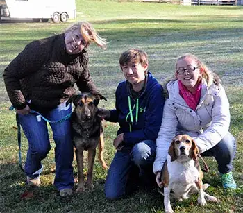 Kaz, Kylene and Kyrie are siblings. All three dogs were turned into a shelter. All are very nice dogs. Kylene is a little frightened by her new surroundings but warms up when she is with her siblings. She is learning some leash manners and enjoys walks with her brother and sister.