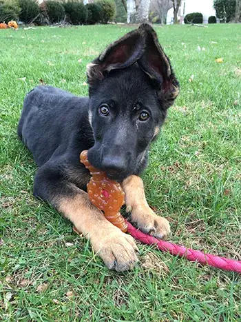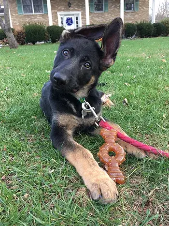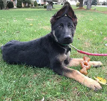Shannon is a girl that loves her ball, a game of fetch helps burn off some of her energy. She is very focused on her person, which will make her breeze through training classes. Shannon would do best with a GSD knowledgeable person who has experience in dealing with a high energy dog Her energy level must be met on a daily basis with walks, playtime and training.