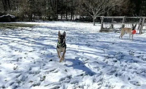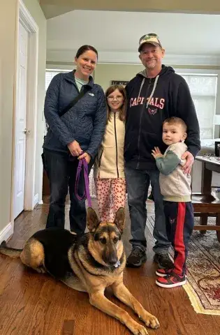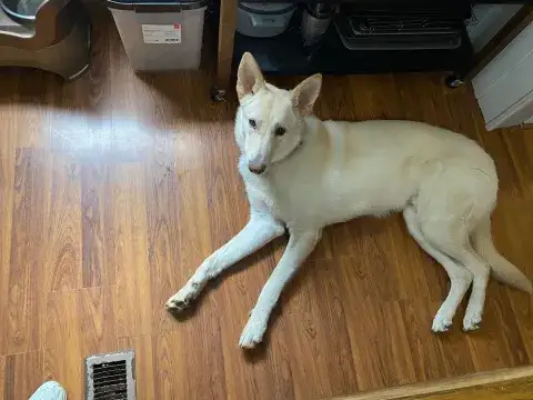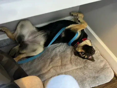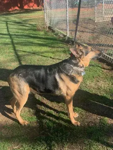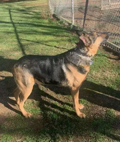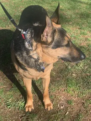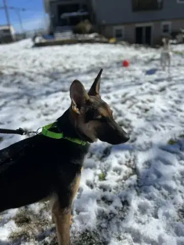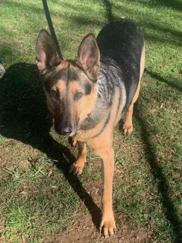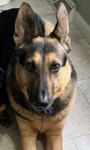 Jethro is a big, handsome, and patient guy. Having grown up with kids and other dogs of various sizes, he was well socialized with littles. The easy-going dog in the group, Jethro is not phased by much when around littles - whether furry or human. Although he was exposed to cats, Jethro has been a little too interested in them and will not be placed in a home with cats. With many of his GSD traits well established, Jethro is loyal, intelligent, and your typical velcro dog. As is typical of many GSDs, it can take Jethro a few minutes to warm up to new people; he can come across as aloof or disinterested. However, once comfortable, Jethro enjoys a good rub down and lean in. When a connection is made, it is strong.
