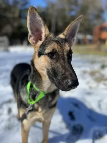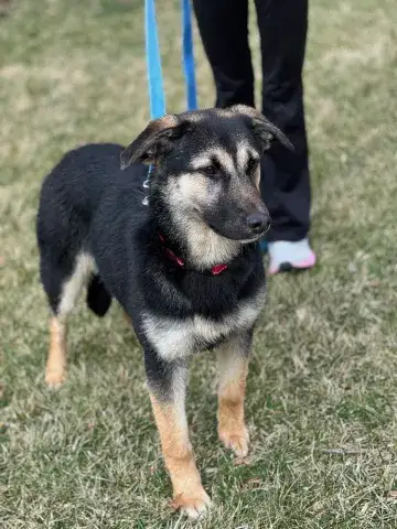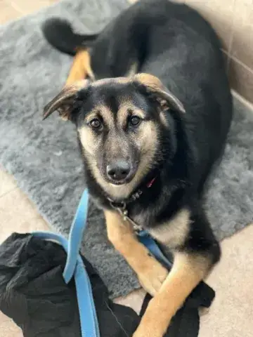 Cali is stunning just like her mother. Intelligent and cuddly once comfortable, Cali is looking for a family that will give her time to decompress. This girl can be unsure, but when given time and patience, Cali does well with a calm and confident handler. She will thrive in an environment with structure, routine, and daily exercise. Still a very young dog, it is imperative that Cali's family socialize her with new people, new animals, and new environments. This will help her develop into a stable adult shepherd. Training is also essential. Not only will training help Cali develop a strong and healthy bond with her forever family, but it will also help her build the skills needed to become a good canine citizen.