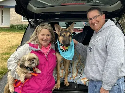 Oakley and his brother, Wicker, were living with a family that was not interested in continuing to care for the boys. Although socialized with kids, cats, and other dogs, these guys were not receiving the care they needed to move forward. Fortunately, another group heard that the boys needed help, and they stepped forward to get them out of a rough situation. Recognizing that shepherds are most successful when placed with a breed specific rescue, this rescue reached out to MAGSR to see if we could welcome the boys to the family. With an incredible team of volunteers working together between both rescues, we were able to welcome Oakley and Wicker to the MAGSR family.