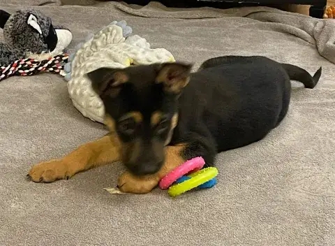The fashion puppies - Louis V, Prada, Dior, and Chanel - are ready to find their forever families. These babies are social, interactive, and energetic. They are the perfect mix of fun. Chanel is dainty but curious about the world. She can be a little reserved in new situations and will be looking for a calm and confident leader. Having lived in an amazing foster home, these babies have begun learning the ins and outs of living in a household. They, like all GSDs, crave structure, leadership, and consistency. Their foster family has worked hard to put this set-up into place. However, it is very important that their forever family continue this process. It is also essential that their forever family continue to provide these babies with socialization in varied environments with varied people and animals. This will help them meet with success.