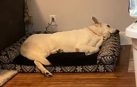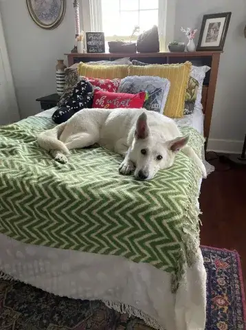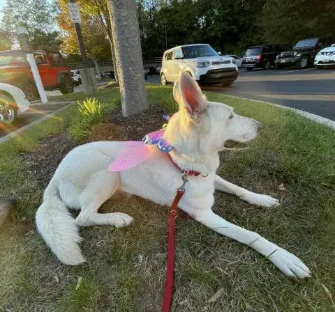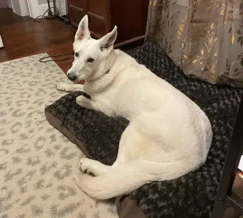 Jetta is very affectionate and loves to snuggle but is also very good at laying on her own and minding her business while her humans go about their activities. She loves to play tug, fetch and loves to run around so she can stretch her legs.