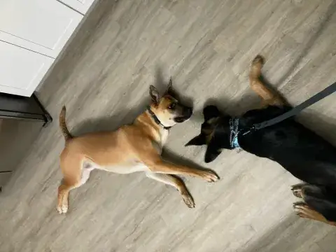 As Kai and Quetta are a bonded pair, they are looking for an incredible forever family that has room in their hearts for two. They are quite the complementary pair. Kai is the pushy goofball. He likes to make a game of everything and always wants to be part of any interaction. As a young guy, he has some good energy and is hoping his forever family enjoys adventures and plenty of playtime. Quetta is your sweet and affectionate velcro dog. She likes to know where her people are at all times and is beyond happy to snuggle up for extra chin scratches. Quetta tends to bring the calming aspect to the pair. Playful and well-matched together, these two definitely enjoy their daily play sessions. They understand the joy of toys and hope their forever family has plenty of them. When playtime is done, Quetta and Kai love to settle down and relax near their people. Although they love their people, Kai and Quetta love each other as well. They prefer to remain close together and tend to stress when separated.