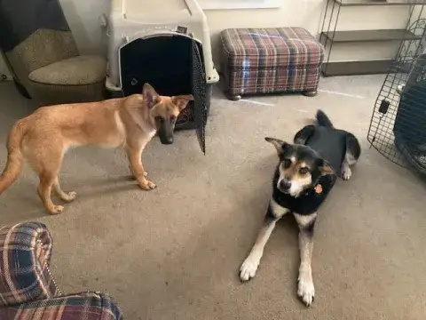 Current Size: Kai: 74 lbs, Quetta: 63 lbs