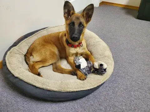 Hunter is a young, intelligent, and affectionate guy. He loves romping around outside and is learning about the joys of toys. Still discovering the ins and outs of living in a household, Hunter will benefit greatly from clear structure, routine, and leadership. We do not know anything about Hunter's past, but we do know that his future is bright with MAGSR. As is true of all young shepherds, it is critical that Hunter's family continue his socialization. Opportunities to learn about new people, animals, and environments will help Hunter further develop his confidence in the world around him. It is also essential that Hunter participate in training. Not only will training help Hunter develop a strong, healthy bond with his forever family, but it will also help him grow up to become a good canine citizen. If this sweetheart seems like the right match for your family, ask to meet him today!