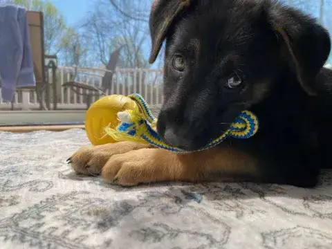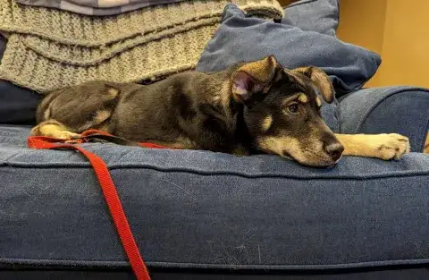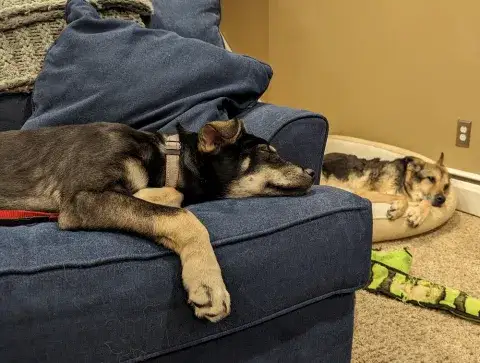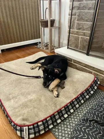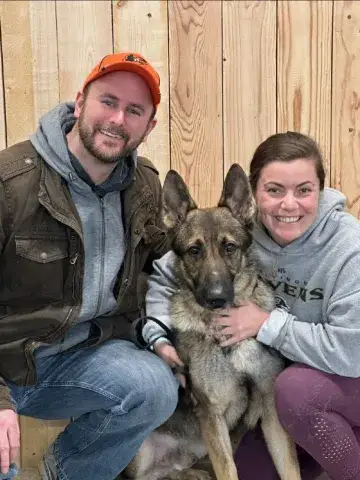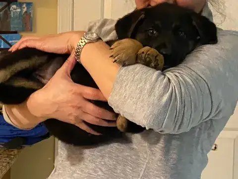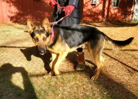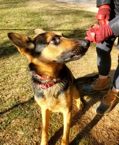 Athena Mae and her buddy, Laika, were surrendered to a local shelter as their family felt they could no longer afford the girls. Recognizing that the girls would be most successful in finding a forever family through a rescue, shelter staff began reaching out to GSD rescues to see if they had openings. As many rescues have been sitting at or near capacity this year, finding placement wasn't easy. However, shelter staff kept up the search and kept the girls safe and loved until they found placement. We welcomed the girls to the MAGSR family for the holiday season this year.