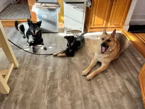 Genie and her family - Axel, Jackie, Gyspie, Sally, and Birdie - are victims of cruelty and neglect. All six dogs were living in horrific conditions. Chained in shower stalls, living in filth, abused, and starved, they endured unimaginable suffering at the hands of their owner. When word of their situation spread to local authorities, all 6 dogs were confiscated and charges were brought against their owner. Recognizing that these dogs would need significant support, a plea went out to see if they could be moved to the safety of a rescue. MAGSR answered that plea and immediately began working with local groups and animal services to get all six dogs the resources needed (medically and socially) to begin to move forward.