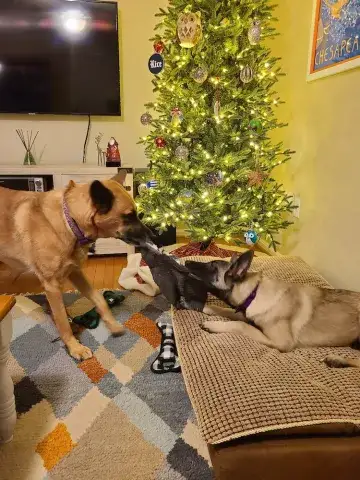 Having been born in what appears to be less than ideal situations, the "Christmas Puppies" arrived having missed out on early vetting, exposure to new environments, and socialization with people outside their immediate caregivers. Now that they are living with MAGSR foster families, their opportunities are endless. All 13 puppies are going to see our amazing vetting partners so that we can begin vaccinations and make sure that everyone is healthy. In their foster homes, these puppies are learning about toys, treats, regular meals, and the comfort of soft, warm beds. They are also beginning the important process of learning the ins and outs of living in a home. As very intelligent pups everyone is excited to begin. As they move forward, it is critical that their new families provide the "Christmas puppies" with regular socialization with people and other animals. A well socialized pup will become a stable adult. Although these babies are absolutely adorable, please remember that puppies are a lot of work. They will whine, chew, have accidents, and fill your home with endless puppy antics. With time, training, patience, and socialization, they will develop into good canine citizens. If you are interested in welcoming a member of the "Christmas puppy" litter into your household, ask to meet them today!