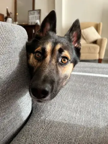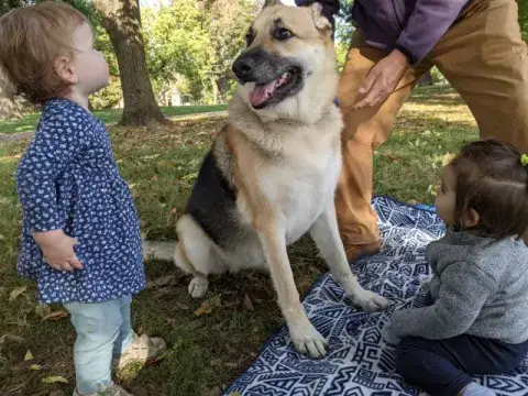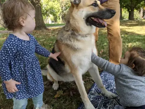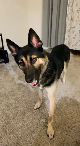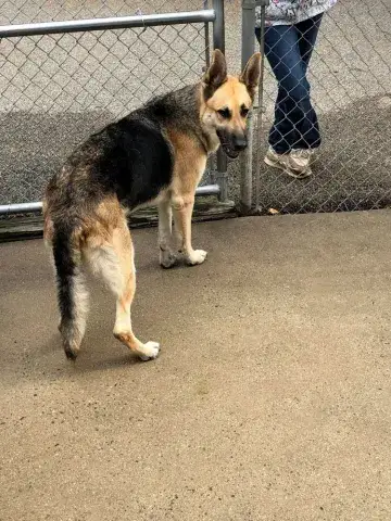 Luna is a sweet and inquisitive girl. Having been bounced around a bit, she can be a little timid in new situations but given a chance to adjust, she does well. As a pup, it is essential that Luna's family continue to socialize her with other people and animals in controlled settings. Luna has been around kids 8 and older and has done very well. She seems to enjoy their company but will still display puppy behaviors so she will need to be monitored. Luna has also met other dogs and a cat. She prefers other dogs that let her get comfortable first but does socialize well. Luna was more intimidated by the cat but was still curious. As is true of all GSDs, Luna will thrive in a household that provides structure, routine, and leadership. Training will go a long way as it will help Luna develop into a stable and confident adult dog.