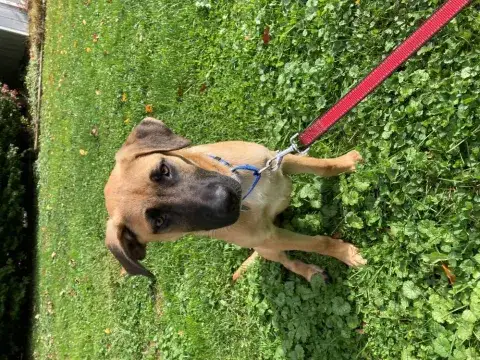 Benny Blu is a big, goofy puppy. He, like his sisters, clearly enjoys the company of her people and is happy to share endless hugs and kisses. Socialized with other animals, Benny Blu enjoys opportunities to play with other pups but tends to take a more dominant role. In new situations, Rosa Lea can be a little unsure. However, with patience and a little time to adjust, he does well. A good listener and very intelligent, Benny Blu will be a star at training class. Training is essential as it will help this handsome guy develop into a confident and stable adult dog. Although Benny Blu is an amazing guy, please remember that puppies are a lot of work. Puppies will whine, chew, and fill your home with endless antics. With time, patience, training, and socialization, Benny Blu will develop into the good canine he is destined to be. If this honey sounds like the right match for your household, ask to meet him today.