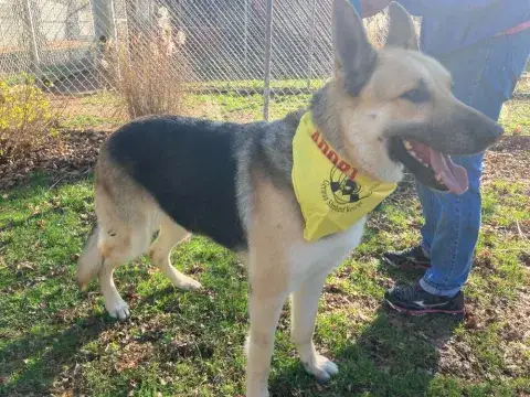Handsome Hank is a sweet, good looking guy. As an attentive and personable boy, he easily catches the attention of everyone around him. Nose driven, this boy doesn't tend to miss a beat in the world around him. Although Hank has lived in a home, we do not know much about his life prior to his arrival in the MAGSR family. It is clear that Hank is a smart guy and picks up new skills quickly particularly, if there are treats involved. Hank is looking for a forever family that will care for him for a lifetime. As is true of all shepherds, he will thrive in a household with clear structure, routine, and leadership. Although he is already learning a few basic commands, Hank will benefit greatly from training. Training is essential as it will not only help Hank develop a strong, healthy bond with his forever family, but it will also help him develop into a good canine citizen.