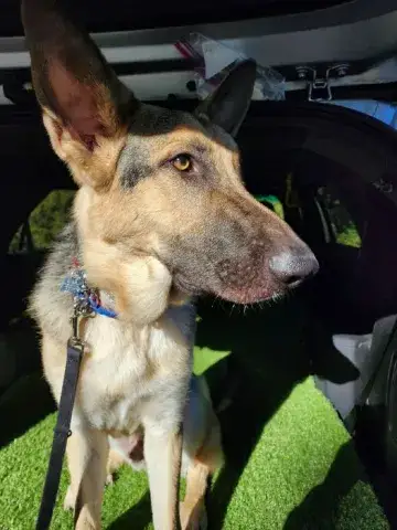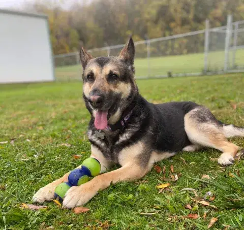 Layla is a sweet and affectionate girl. With a goofy personality, it is impossible to avoid smiling when in her presence. She simply spreads joy wherever she goes. Clearly well-socialized, Layla enjoys the company of both human and furry companions. As she arrived at the shelter as a stray, we do not know much about her history or her knowledge of living in a home. However, we do know that someone clearly cared for her at some point and taught her the joy of playtime, snuggles, and some extra pets. Layla is looking for a household that will provide her with the structure, routine, stability, and leadership that all shepherds crave. She is looking forward to participating in training with her forever family. Training is an excellent way to build a strong and healthy bond as well as help Layla develop the skills needed to become a good canine citizen. Layla is looking for a forever family who enjoys giggles and goofiness. Could that be you?
