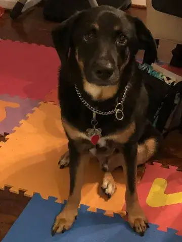 Titan is a happy, friendly, and joyful guy. A big fan of cuddles and the lean in, Titan regularly seeks out affection from his people. Open to a variety of entertainment options, Titan loves balls, toys, and bones. Although Titan does enjoy his playtime, he is also very good at being a couch potato. He has just the right amount of energy for family life. As a mature fellow, Titan understands the rules of the household. He is housebroken and crate trained. His days of puppy behaviors are behind him. A great companion, Titan keeps an eye on his people and always wants to be part of the fun.