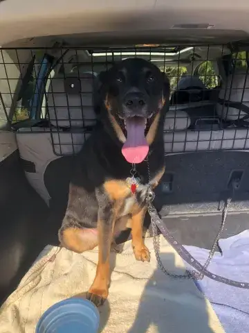Beau is one amazing guy. He has clearly been well socialized with people. He is beyond friendly with everyone he meets, but we are still learning how he interacts with other dogs. Beau loves ear rubs, frisbee, car rides and has been the perfect patient at the vet. It is very apparent that he has a special personality.