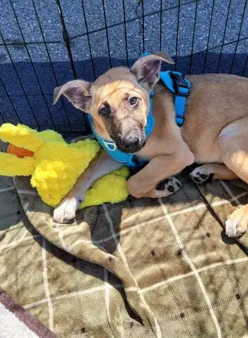 Niner and his adorable siblings have been through a lot of changes in a short period of time. However, a resilient group, these babies have maintained some very typical puppy behaviors. They are active, intelligent, and very good with other animals. With a good understanding of toys, treats, and a soft place to relax, all four babies have been lucky to have settled in experienced foster families. Still developing their socialization skills, Niner and his siblings will need endless opportunities to socialize with people and other animals in safe and controlled settings. Socialization is critical to their success as this will help them develop into stable adult dogs. Although these babies are cute as can be, please remember that puppies are a lot of work. Puppies will whine, chew, have accidents, and fill your household with endless puppy antics. With time, training, patience, and leadership we know that Niner and his siblings are destined for greatness. Niner is looking for a household that will provide him with a good balance of training, playtime, and cuddles. If this cute little guy sounds like the right match for your family, ask to meet him today!