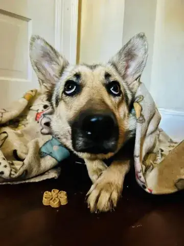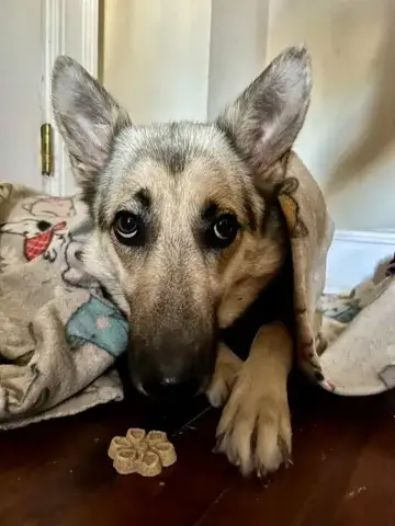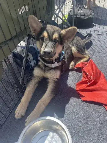 Schmidt, like so many dogs, found himself at a crowded shelter as just a baby. Underweight, dirty, full of worms, and malnourished, this little guy was scared and unsure. It was beyond evident that he needed help and fast. Fortunately, a local rescue was able to pull this handsome guy quickly and began getting him some of the critical care he needed to meet with success. With some much needed vetting started and some supportive care in place, the rescue began looking into breed specific resources that could help Schmidt find a safe and loving forever home that would understand and know how to work with a GSD. Shepherds are an intelligent, active, and loyal breed; however, it is understood in the rescue community that they are not for everyone. When asked if we could welcome Schmidt into the MAGSR family, our team immediately came together to provide him with a safe landing.