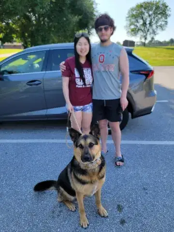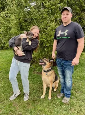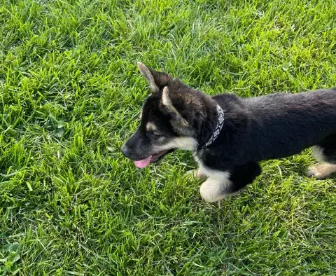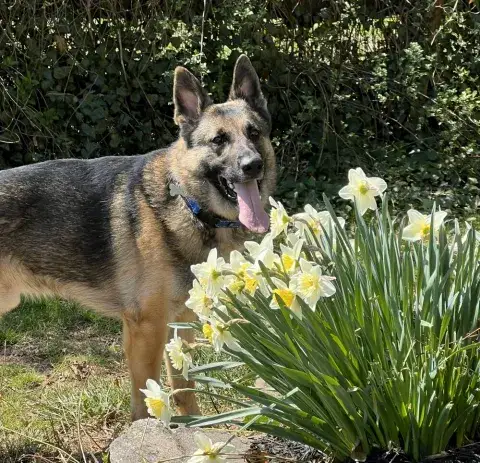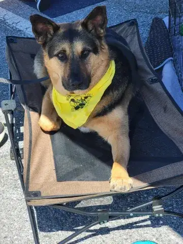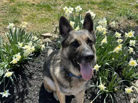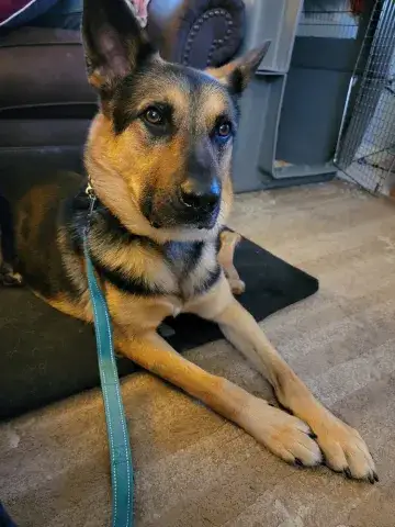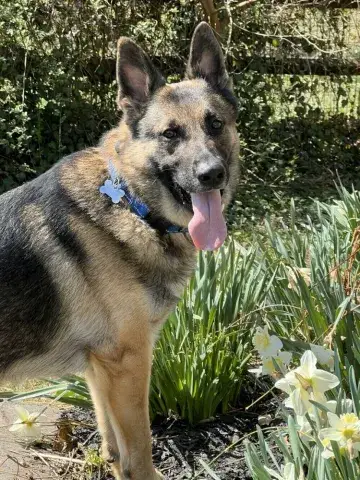 Kai is a friendly guy who has a definite cuddly side. An incredible velcro dog, this boy loves being close to his people and makes an incredible shadow. Having a strong love of the outdoors, Kai is beyond happy to get a good long breath of fresh air, sniff the flowers, and go on an adventure. Daily opportunities to run around outside, go for a walk, and enjoy being in nature bring him endless joy. Although he has been socialized around other dogs, Kai is most content with his buddy, Kash. He would be more than happy settling into his forever family with Kash at his side. Having lived in a GSD savvy home, Kai has learned the ins and outs of living in a household. He is house-broken and crate trained. However, as is often true with the breed, he will chew on things that are left in the crate with him. Crate safe items only please! True of all new dogs, Kai will need time to adjust to his forever family. With structure, routine, leadership, and daily activities, Kai will thrive. Training will be key to his success. Although he already knows some basics, training will help Kai develop a strong and healthy bond with his forever family. In addition, it will help him develop the skills he needs to become a good canine citizen.