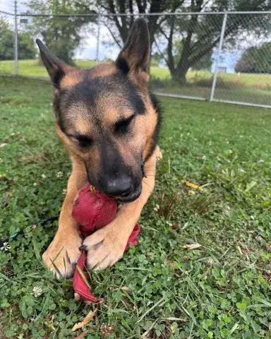 Recognizing that Shep needed medical support right away, we worked with several groups to ensure he had what he needed. Shep had his medical needs addressed and was placed in a loving home to recuperate. Seeming to understand that this was his chance to decompress and let the healing process happen, Shep took some time to relax and get healthy again. Once he started feeling better, we were able to move him to one of our experienced foster homes where Shep had the chance to start acting like a dog again. An active guy with a high ball drive, Shep's all-time favorite activities involve balls. He will happily chase and mouth a ball for hours. In fact, it seems that he is hoping that his forever family has an affinity for throwing as, in his mind, humans are meant to be his personal throwing machine. Still learning the finer points of playing, Shep still needs some time to further decompress and learn the ins and outs of appropriate play. This guy is looking for an active family that will provide the structure, routine, and expectations needed to meet the needs of a headstrong shepherd. He would likely be happiest with a job, like nosework, or an activity, like treibball. With a little refinement, Shep would likely excel at Rally or flyball! Living in a foster home, Shep is learning the ins and outs of living in a home. He is learning to crate train and housebreak. He is also learning about the general routines and expectations of living in a GSD savvy home. However, he will need time and patience to adjust to the expectations and routines of his forever family. As is true of all dogs, training will be key to Shep's success. Not only will training help Shep build a healthy bond with his forever family, but it will also help him develop the skills needed to become a good canine citizen.