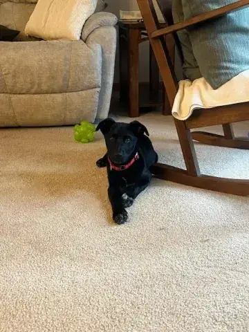 Babs and her adorable siblings have been through a lot of changes in a short period of time. However, a resilient group, these babies have maintained some very typical puppy behaviors. They are active, intelligent, and very good with other animals. With a good understanding of toys, treats, and a soft place to relax, all five babies have been lucky to have settled in experienced foster families. Babs is a big fan of toys and loves anything with the baby paper sound. She also seems thrilled to have teething bones to keep those little teeth busy. Still developing their socialization skills, Babs and her siblings will need endless opportunities to socialize with people and other animals in safe and controlled settings. Socialization is critical to their success as this will help them develop into stable adult dogs. With some food drive and a big fan of praise, Babs has already begun developing some basic commands. She knows "sit" already and is learning "down" and "come". Taking treats and food very gently, Bab's foster is hand feeding her to teach bond with the little lady as well as teach additional commands. This lovely lady is quite the student. Her housebreaking and crate training are moving along fabulously. Babs holds it through the night and sleeps well.