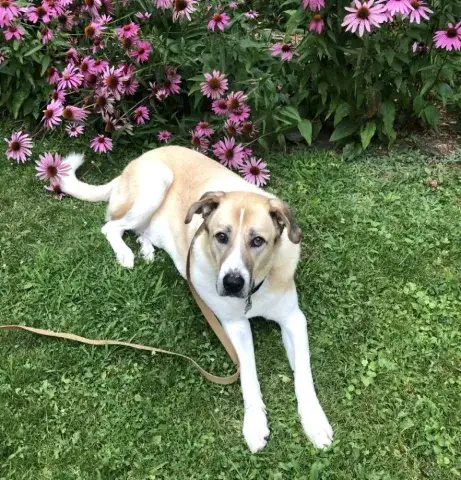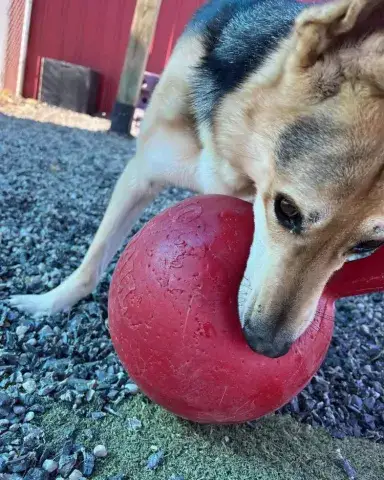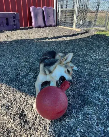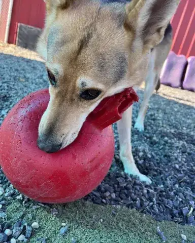 Spizike is a stunning girl. Although frightened in the shelter environment, when given the chance to relax, this girl's goofy personality absolutely shines. With a little time to adjust and build trust, Spizike is beyond happy to accept love, attention, and plenty of pets. Her favorite thing? Balls! They are her jam and are the quickest way to Spizike's heart. When introduced to other dogs at the shelter, Spizike was energetic and displayed a playful attitude. She was friendly and social while enjoying zoomies throughout the play area. Fortunate to have been placed with an incredible temp foster, Spizike has fit seamlessly into her foster family and their pack. Very playful and sweet, she has happily enjoyed daily play time and the opportunity to play with a variety of toys. Living with both male and female dogs, she seems to adjust her energy to the energy of the dogs around her. Spizike mirrors the energy of the dogs in her pack. The more active dogs excite her and she mirrors their energy. The more reserved dogs temper her excitement. Spizike has also been living with small animals and cats who are very accustomed to large dogs. She has done well with them and may be a great match for a household with small animals. However, she has not been exposed to cats or small animals that act like prey. Although Spizike is learning the ins and outs of living in a home, it is important that her forever family give her time to adjust to their expectations and routines. We know she will thrive with clear routines, structure, and leadership. Training will go a long way with Spizike. Not only will it help her create a strong bond with her forever family, but it will also help her develop the skills needed to become a good canine citizen. With time, training, and patience, we know that Spizike is going to bring endless joy to a lucky family.