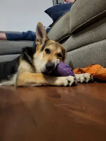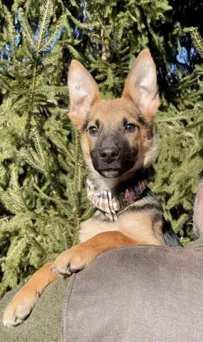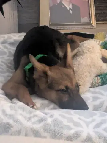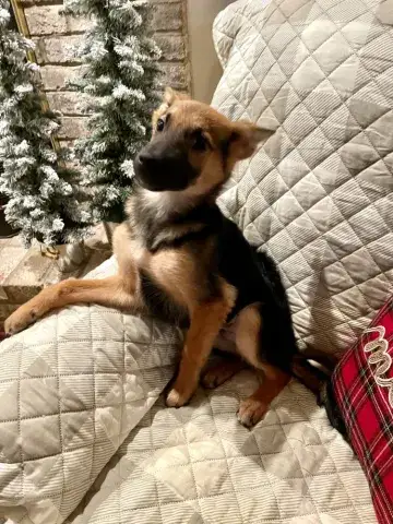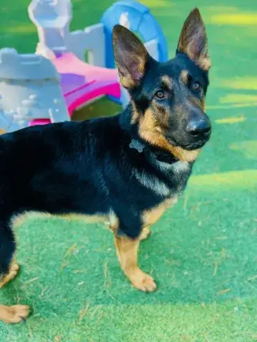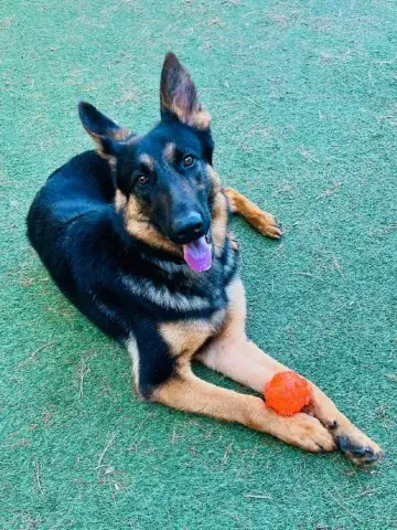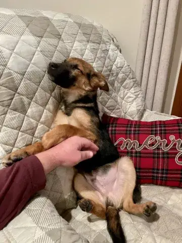 Little Miss Estrella - our "little star" - is a friendly, wiggly, young girl. Still very much a baby, this girl is energetic, goofy, and full of puppy antics. She is hoping to find an active household that will continue to socialize her with people and other animals. As is true of all GSDs, daily exercise for her body and her mind will be critical to her success. The combination of regular socialization and exercise will help Estrella develop the skills necessary to become a good canine citizen. We do not know a lot about Estrella's past. However, Estrella has had the opportunity to live with foster families while waiting to find her forever home which has given us a chance to learn more about this lovely little star. Starting to learn the ins and outs of living in a home, Estrella loves soft beds, endless snuggles, and a variety of toys. She is adjusting to crate training and is housebreaking nicely. However, as is true of all new dogs, our little star will need some time and patience to adjust to the expectations of her forever family. Estrella will thrive when provided with structure, routine, and leadership. Living with several other dogs in her foster home, Estrella has done very well with several different personalities. She is flexible, playful, and excited to engage with her furry family members. It is critical that Estrella continue to socialize with other furry friends in controlled environments to maintain her skills. As a dog that was picked up several times by animal control, Estrella is considered a flight risk dog. Her family will need to take precautions to ensure she is safe as she adjusts to her forever home. Keeping Estrella on leash when out and about will be key to her success as she learns the rules and boundaries within her forever home. Training will also go a long way with Estrella. Not only will it help her create a strong and healthy bond with her forever family, but it will also help her develop into a stable and confident adult.