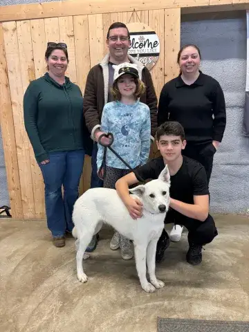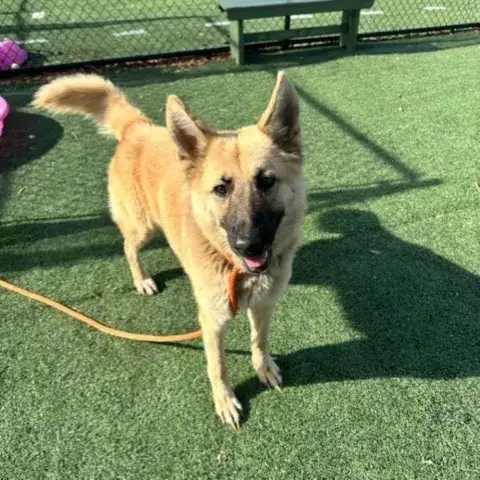 Goofy Ghost is a happy-go-lucky guy. He is friendly, affectionate, and very social. With lots of energy and curiosity, this handsome boy is almost still like a puppy, but with the people that he has met, he has shown to be a real sweetheart who loves a good cuddle. Like all shepherds, Ghost will be most successful when given clear direction, boundaries, and expectations. When provided with structure and routine from a calm and confident handler, Ghost will thrive. His future new home will help get him the training he needs to create a healthy bond with his forever family, but it will also help him continue developing the skills needed to become a good canine citizen. If you are looking for a cuddly guy who will love you with his whole heart, ask to meet Ghost today!