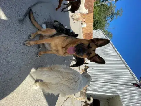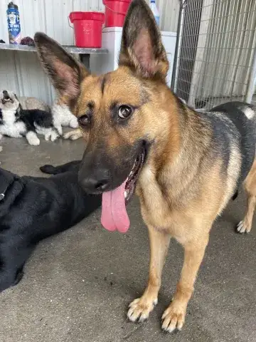 Lulu is a friendly, active, and intelligent girl. Clearly well socialized, she enjoys the company of people and has had the opportunity to interact with both children and adults. She has also had opportunities to connect with other dogs and has done well. It is critical that Lulu's forever family continue this process as a social dog is a stable dog. Having lived in a home, Lulu does understand many of the expectations of household living. However, as is true of any new dog, she will need time to adjust to the expectations and routines of her forever home. She, like all GSDs, will thrive with patience, structure, and leadership. Mirroring her responses to the handler, Lulu prefers a clear but confident handler who maintains stability and control. Typical of the breed, Lulu can become anxious, talkative, and jumpy in new environments. However, when given clear directions and a chance to decompress, she does respond beautifully. Lulu already knows a few commands, such as sit and stay, but she is ready to learn more. Training will go a long way with this sweetheart. Not only will it help Lulu build a strong and healthy relationship with her forever family, but it will also help her develop the skills needed to become a good canine citizen.