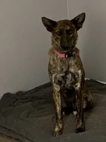 Meet Farrah! Farrah was found as a stray who, despite clearly seeing some rough times, was still extremely friendly and people oriented at the shelter. Unfortunately for Farrah, time to charm families at the shelter was short, but the staff worked diligently to find her a rescue where she could be seen for what she is- a true diamond in the rough! Poor, sweet Farrah must have struggled to find food prior to arriving at the shelter as she is emaciated and had to overcome several infections before she could start trying to gain any weight back. Now in a foster home, with lower stress levels and continued vet care, Farrah is on the road to recovery! Malinois tend to have a certain reputation for being overly energetic and drivey dogs but Farrah has shown that with age comes grace and poise...and a love for couch surfing! Farrah is game to explore the trails or play with toys, but her number one love is snuggling on a soft surface with an endless supply of pets (she's not above nudging your hands to remind you of your priorities!) Farrah does however have the super brain her breed is blessed with and has already caught on to several training commands and is crate/house trained. Farrah has three cat and two dog siblings in her foster home who she enjoys thoroughly. She still considers chasing a running cat but readily calls it off when she is caught in the act. She easily fits in with the other dogs in the home as a stable companion. Farrah is still a new arrival within her foster home and is sure to exhibit new behaviors as she blossoms into her true self. Her foster family is sure that as she gets more comfortable she will show off some more layers of her beautiful personality and engage in more playful antics with her foster brothers. For now, she is just so grateful for couches and ear rubs to concern herself with much else! Farrah is looking for a forever family that will adore her for a lifetime, could that family be you?