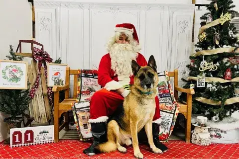 The Holiday Puppies - Tinsel, Mistletoe, Joy, and Jingle - are a merry little bunch. This sweet group of babies was an "accidental litter" that was born into a loving household in the area. Although their owner ensured that the puppies stayed with their mom until they were old enough to find homes of their own, he knew that providing for so many babies was too much. He also knew that he would need help to find safe and loving forever homes for the littles. So, he reached out to the rescue community for help. Fortunately, several groups came together to help move the Holiday litter forward. With teamwork in place, the entire litter moved into rescues this week. Two of the babies went to another GSD rescue. The remaining four babies were welcomed to the MAGSR family.