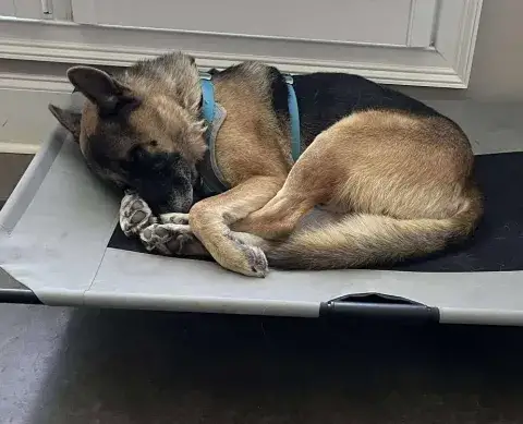 Incredible Izzy was picked up as a stray in the south. Although she was lucky to be picked up and brought to a shelter, unfortunately, with overwhelming numbers of homeless animals everywhere, her life remained in danger. Although shelter staff did everything they could to find her family, when no one stepped forward after her stray hold, Izzy found herself in a scary situation. Recognizing that Izzy, like so many others, deserved a chance to move forward safely, a plea for rescue placement was sent out to the GSD community. When asked if we could welcome Izzy to the MAGSR family, our team knew we were the right people to move this lovely girl forward.