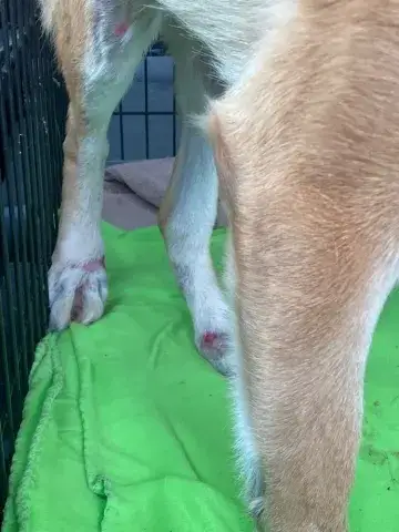 Courage is in a significant amount of pain. However, he remains gentle and friendly. At this time, Courage is unable to bear full weight on one of his back legs and has several deep wounds on his legs and feet. These wounds look infected and are significantly impacting his ability to move easily. Fortunately, MAGSR has a phenomenal vet working with Courage already. He is getting x-rays completed, wound care, antibiotics, and pain medication. Over the next few days we will have a better idea of the full extent of Courage's medical needs. However, no matter what the prognosis MAGSR will be by his side every step of the way. Although Courage will receive all of the love and care he needs to recover, MAGSR needs help making his Christmas wish come true. Please consider donating to his care so that MAGSR can continue to help dogs like Courage this holiday season.