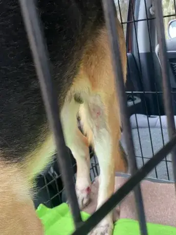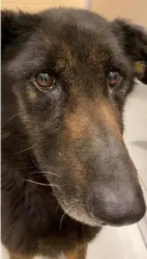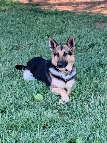 Courage's wounds are healing nicely and he can even walk up and down the stairs in his foster home to sleep with his foster family in their bedroom. In his foster care he has experienced other dogs and is a NO for cats. He would prefer another dog or GSD that is playful in his forever home but he could be an only dog. He has a sweet, playful personality and loves to roll on his back for belly rubs. He likes a Kong ball but is currently restricted to having it in his crate due to being heartworm positive. He loves to be 'outside' and he is an expert sniffer like most shepherds and then some! Even though his outside time is restricted, it is evident that he will need to improve his leash walking skills. He does recognize some basic commands but will need to attend a training class and then practice his newly learned skills. Courage seems to be familiar with noises, activities and rules of living in a house. He has not had any accidents in the house and sleeps fairly quiet at night except for changing his sleep position. He loves to be with his people and would love to be your lap or couch dog if allowed. Courage is a handsome boy with a great personality and should fit in with most families with older children.