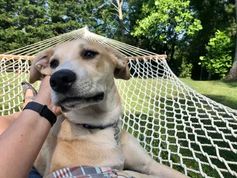 A stable and friendly guy, Ranger seems to enjoy the company of his people. He is a playful guy and will happily fetch a ball and drop it for another throw. A big fan of squeaky toys, Ranger smiles while he plays. Although he is still a little sensitive around his ears, which is likely due to the severity of his ear infections, Ranger loves attention and happily rewards his people with kisses. Once comfortable, he will ask for belly rubs as well. As a social guy, Ranger can be vocal at first when left alone but he quiets down quickly. Having had the opportunity to meet dogs of a variety of sizes and temperaments, Ranger's confident and easy-going personality wins everyone over. Ranger will need to continue to have regular baths to help his skin clear up and will need to be kept on a low ingredient food in order to keep his allergies in check. This sweet boy is looking for a family that will commit to loving him for a lifetime. Could that be with you?