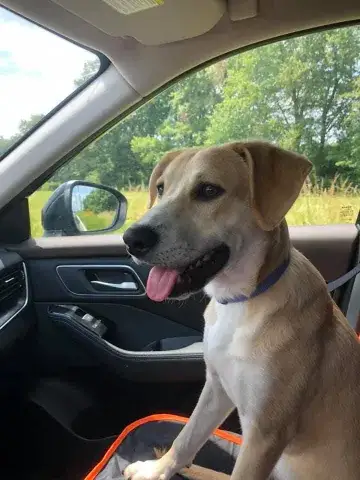 Lovely River was dropped at a shelter in the south. Although the person that dropped her off didn't provide any information about this girl, it was very clear to the shelter director that River was special. So, she took River home as a foster until a rescue could be found. When we heard about River, we knew she would be a great addition to the MAGSR family.