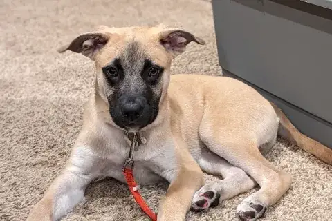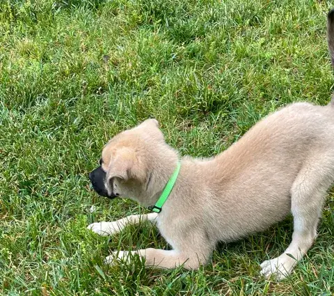 Emmie and her pups have been lucky to have lived in a loving foster family. This gave them all the opportunity to learn some of the ins and outs of living in a home. All of the babies did an incredible job with their foster family and have since moved onto foster homes where they are getting additional love and attention in smaller groups. Cal is friendly, goofy, and an interactive guy. He loves his furry siblings but is also happy to hang out with other dogs and people. Having already begun socializing with new people, animals, and in new environments, Cal is already building a solid foundation. It is imperative that his family continue this process as he moves forward. Cal, like all dogs, will thrive in a home with structure, routine, and leadership. With the right set-up, we know this little sweetheart will be impressive. Although Cal is special, please remember that puppies are a lot of work. They will whine, chew, have accidents, and fill your home with endless puppy antics. With time, patience, and training, Cal will become a stable and confident adult. Cal is looking for a forever family that will cherish him for a lifetime. If he sounds like the right match for your family, ask to meet him today!