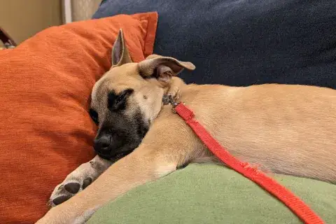 Onya, previously known as Onion, was adopted by her mom a few years ago. They were an incredible team. With the help of her mom, Onya completed basic obedience, started scent work, and had the opportunity to develop more advanced skills. They brought endless joy into each other's lives with activities during the day and plenty of cuddles at night. It was beyond evident that these two were meant for each other. Everything was going according to plan and it seemed like they would bring joy to each other for many years. Unbeknownst to the pair, an unimaginable medical diagnosis was looming. Onya's mom received news of a terminal illness that would upend their perfect world. When she realized that Onya would need a safe place to land, Onya's mom contacted our team, shared her story with us, and asked for help. Our team did everything we could to bring comfort to this family and welcomed Onya back to MAGSR.