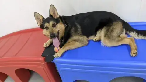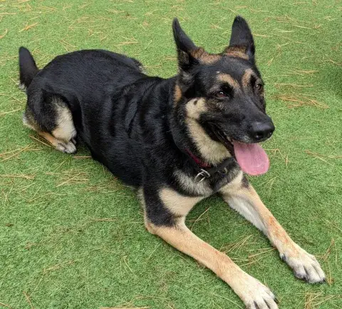 Amir is a big, friendly, and confident guy. It is very evident that someone along his journey socialized him with people and other animals. Although he has been through a lot over the last few weeks, Amir remains stable and interested in meeting new people. He is looking for a forever family that will adore him just as much as we do. As he moves forward, Amir will meet with success when provided with the structure, routine, and leadership that all GSDs crave and deserve. Training is also critical to his success. Not only will training help Amir build a strong and healthy bond with his forever family, but it will also help him develop into a good canine citizen. We do not know much about Amir's past, but we do know that he does understand some of the ins and outs of living in a household. He is beyond happy to stretch out on a comfortable bed and check in for bedtime snuggles. Although Amir has clearly had the luck of living in a home at one point, he will need time to adjust to the routines and expectations of his forever family. Amir is looking for a family that will love him for a lifetime. Could that family be you?