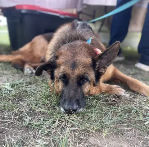 Bodacious Bubba and his pal, Suzie, were picked up as strays in the south. Although both dogs were friendly, when the pair arrived in an overcrowded shelter they were on borrowed time. Unfortunately, with numbers at critical levels in most places, many shelters are struggling to keep up with the number of animals needing placement. Hoping to ensure that as many animals as possible make it out alive, shelter staff are doing everything they can to transfer dogs to reputable groups. When Bubba and Suzie were not claimed by a family, they were both placed on the list to be euthanized. Knowing that these dogs deserved the chance to move forward, a plea went out to the GSD community for help. Although we were also sitting near capacity, we knew both dogs were out of options. Team MAGSR began working with other groups in the area to pull both dogs to safety at the last second.